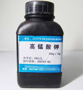 高錳酸鉀(Potassium permanganate)為黑紫色、細長的棱形結晶或顆粒,帶藍色的金屬光澤;無臭;與某些有機物或易氧化物接觸,易發生爆炸,溶于水、堿液,微溶于甲醇、丙酮、硫酸,分子式為KMnO4,分子量為158.03400。熔點為240°C,穩定,但接觸易燃材料可能引起火災。要避免的物質包括還原劑、強酸、有機材料、易燃材料、過氧化物、醇類和化學活性金屬。產品特性: